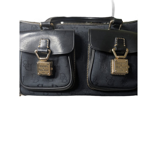 VTG Dooney& Bourke Black 2-Lock Pocket Satchel Nylon Leather & Golden
