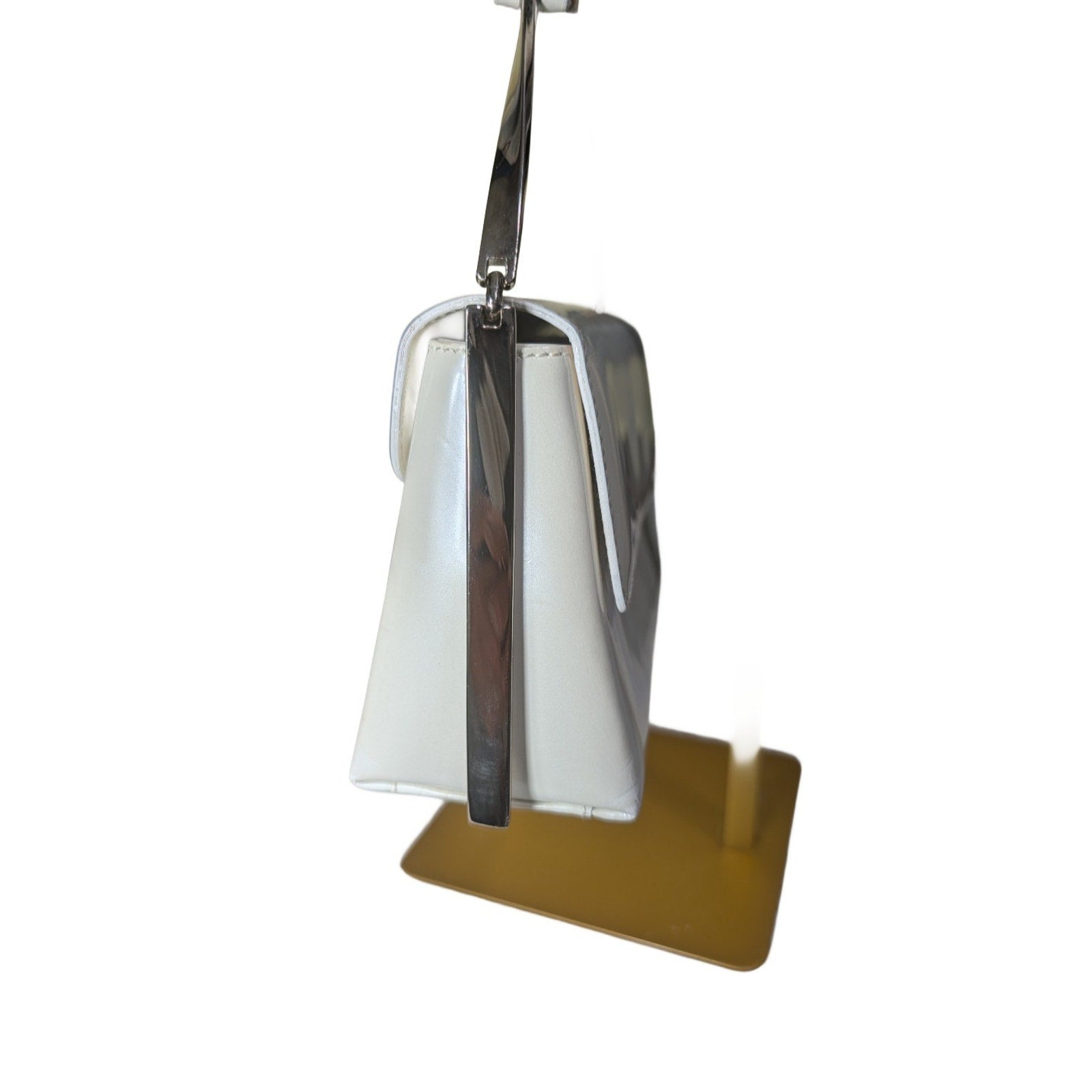 Made in Italy, this small rectangular bag features a magnetic closure and a pearl exterior with silver hardware accents.